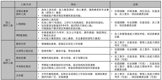 促发展:基于测评的结果并与不同岗位序列及层级的胜任标准、关键任务之间的交叉分析情况,为企业提供人才发展服务。